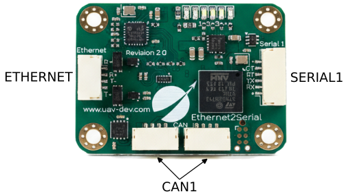 Der Serial-to-Ethernet Konverter der UAV-DEV GmbH ermöglicht eine deutlich höhere Datenrate im Vergleich zu klassischer UART-Telemetrie. Über die serielle Schnittstelle des Autopiloten sind Übertragungsraten bis zu 12,5 Mbit/s realisierbar.