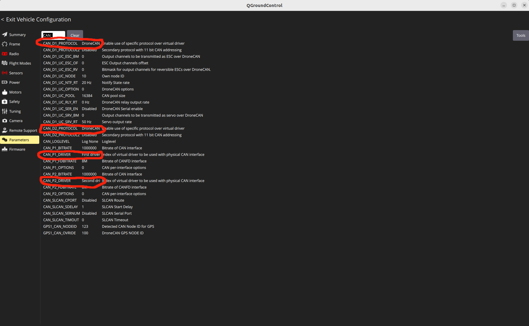 Stellen sie sicher, dass im Autopilot der DroneCAN Bus, an dem das LED-Modul angeschlossen ist, aktiviert ist.